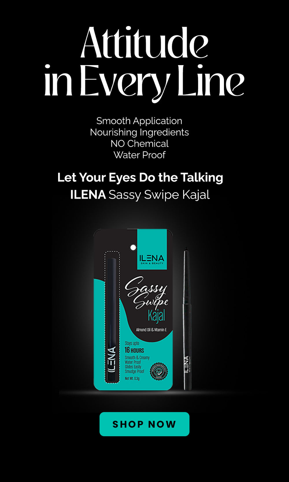 Define your eyes with bold intensity using the ILENA Sassy Swipe Kajal in Black. This ultra-pigmented kajal delivers a deep, jet-black finish in just one smooth swipe. Its smudge-proof, waterproof formula glides effortlessly along the waterline and lash line, offering long-lasting wear for up to 12 hours without fading or flaking.