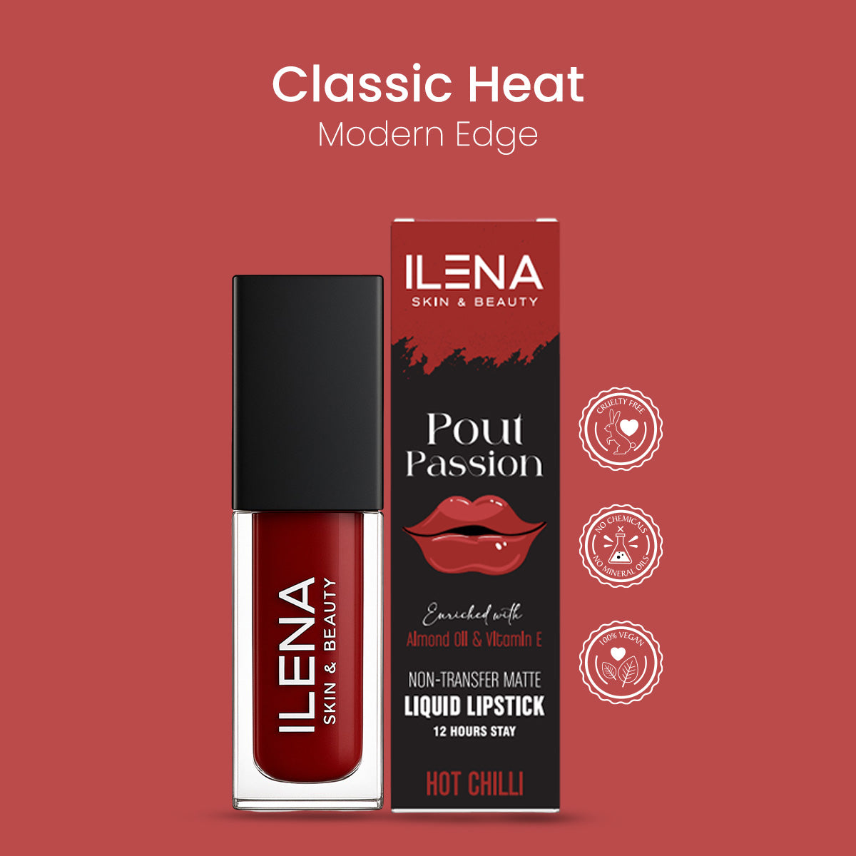 ILENA Pout Passion Liquid Lipstick, Hot Chilli Shade