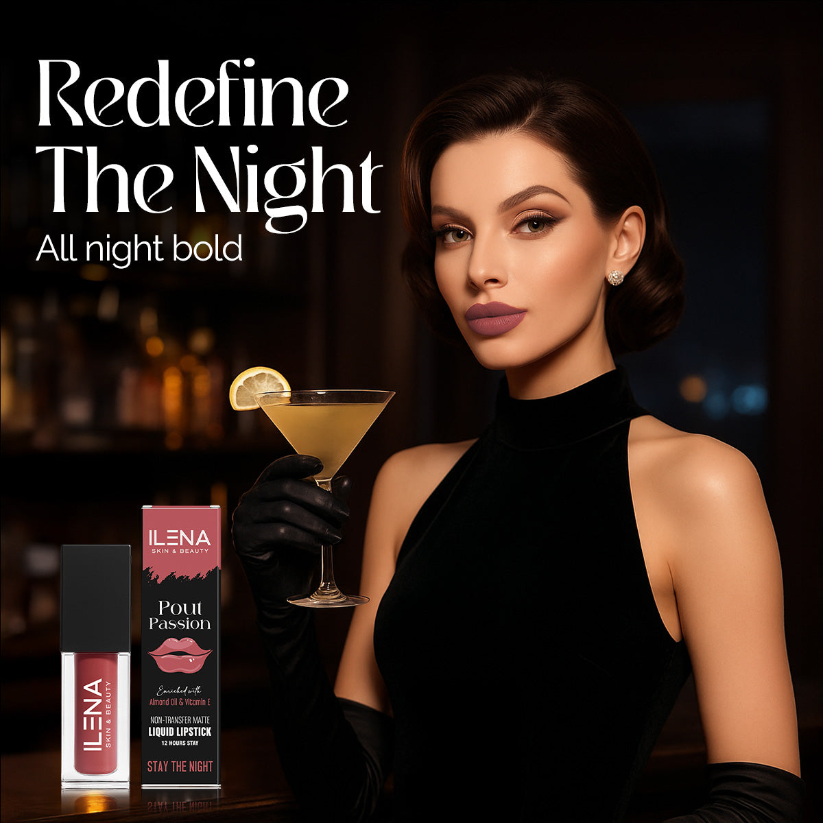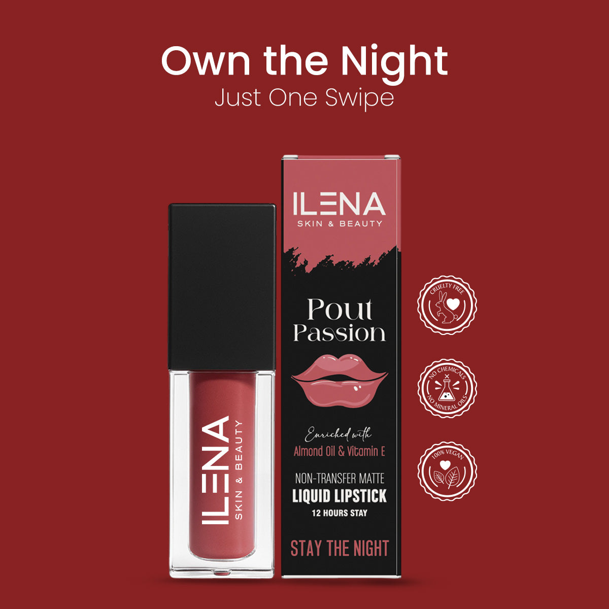 ILENA Pout Passion Liquid Lipstick, Stay The Night Shade