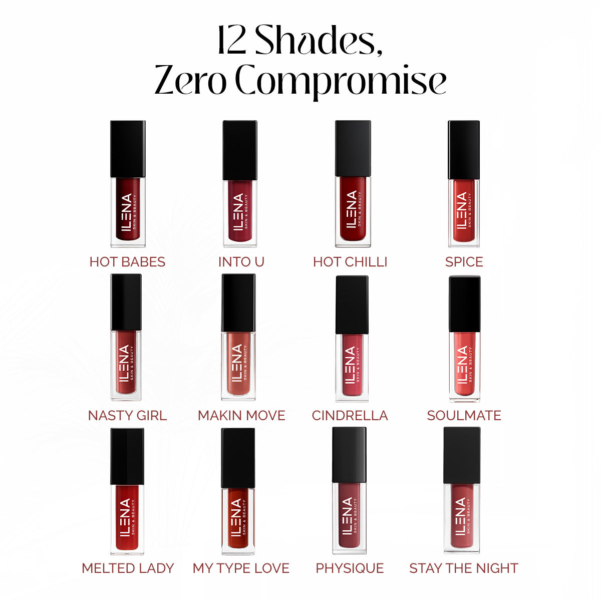 Ilena Long-Stay Lipstick offers a rich, vibrant color payoff with a smooth matte finish that lasts for hours — kiss-proof and smudge-resistant.